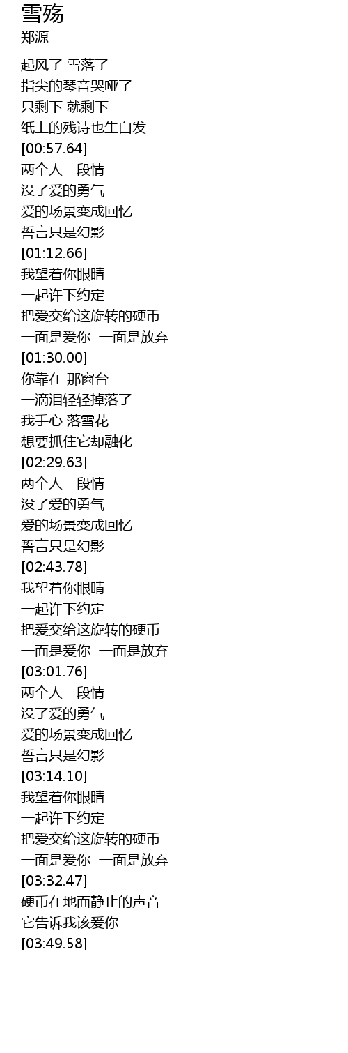 | [00:33.91] | 起风了 雪落了 |
