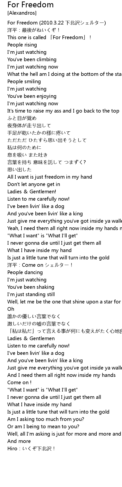 | [00:00.50] | For Freedom (2010.3.22 下北沢シェルター) |