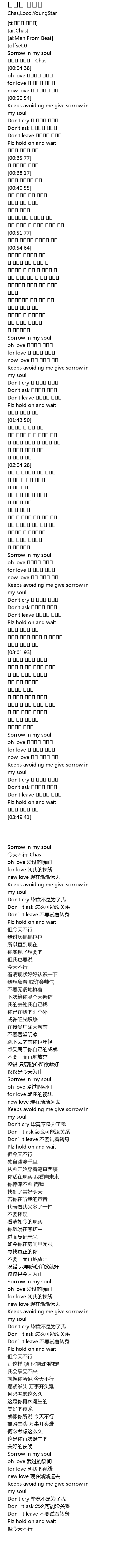 | [00:03.10] | 오늘은 아니야 - Chas |