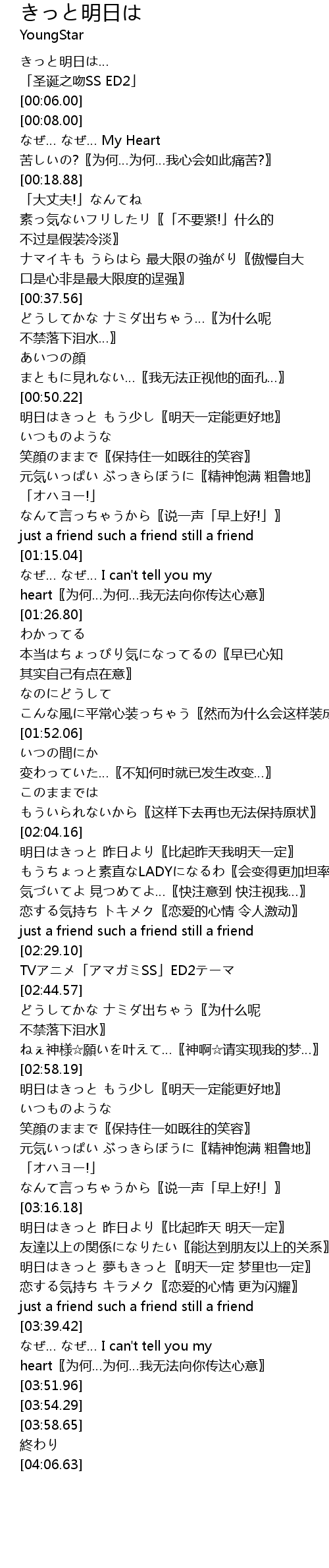 | [03:00.52] | 明日はきっと もう少し〖明天一定能更好地〗 |