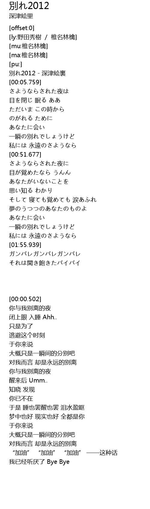 | [00:00.502] | 別れ2012 - 深津絵裏 |