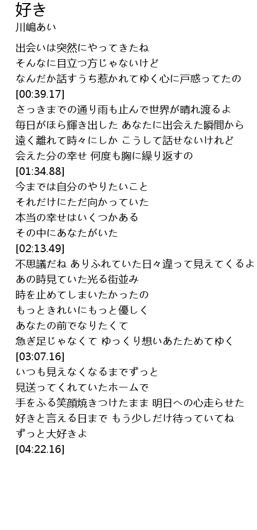 | [03:35.85] | いつも見えなくなるまでずっと 見送ってくれていたホームで |