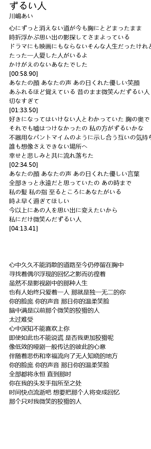 | [01:52.35] | 即使如此也不能说谎 是否我更加狡猾呢 |