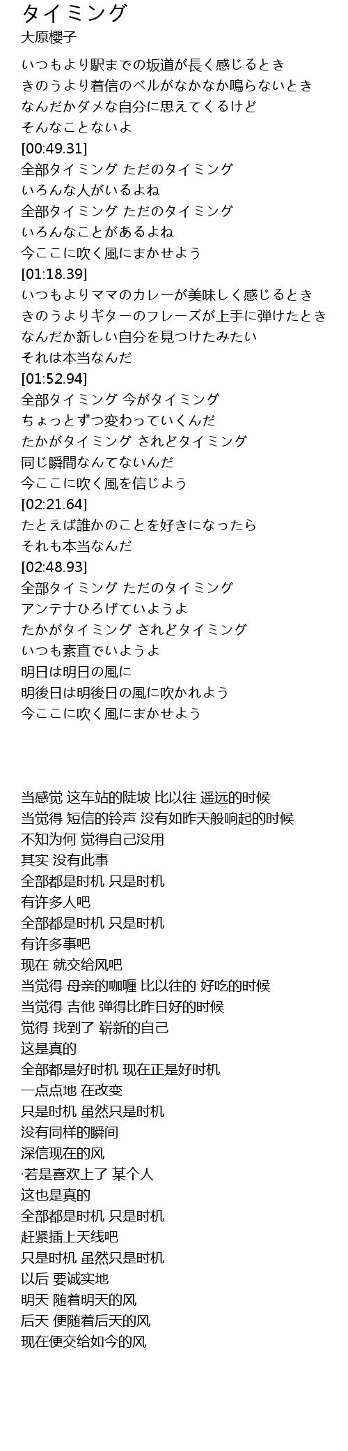 | [00:59.36] | 全部タイミング ただのタイミング |