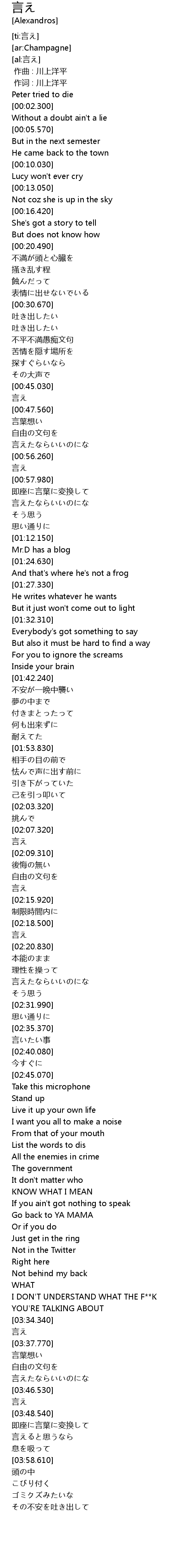 | [02:38.270] | 言いたい事 |