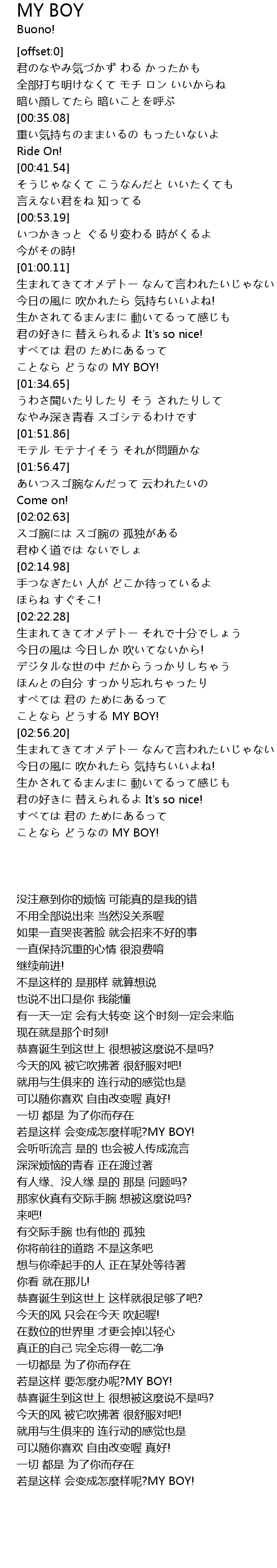 | [03:47.66] | ことなら どうなの MY BOY! |