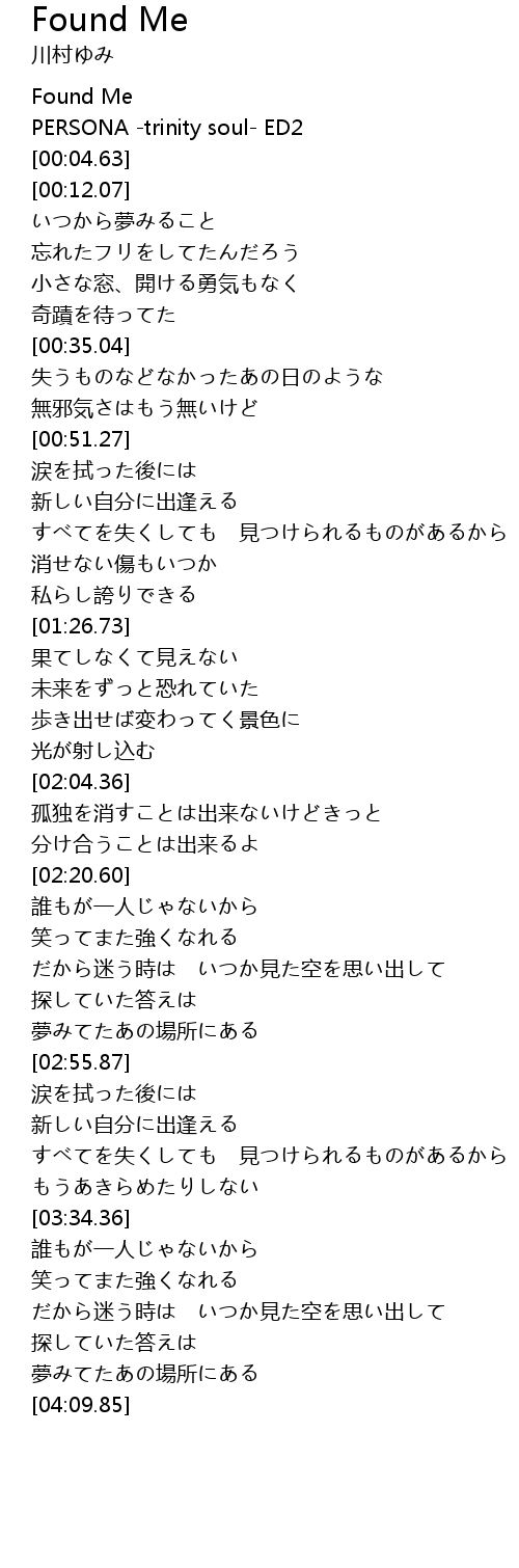 | [00:00.76] | Found Me |