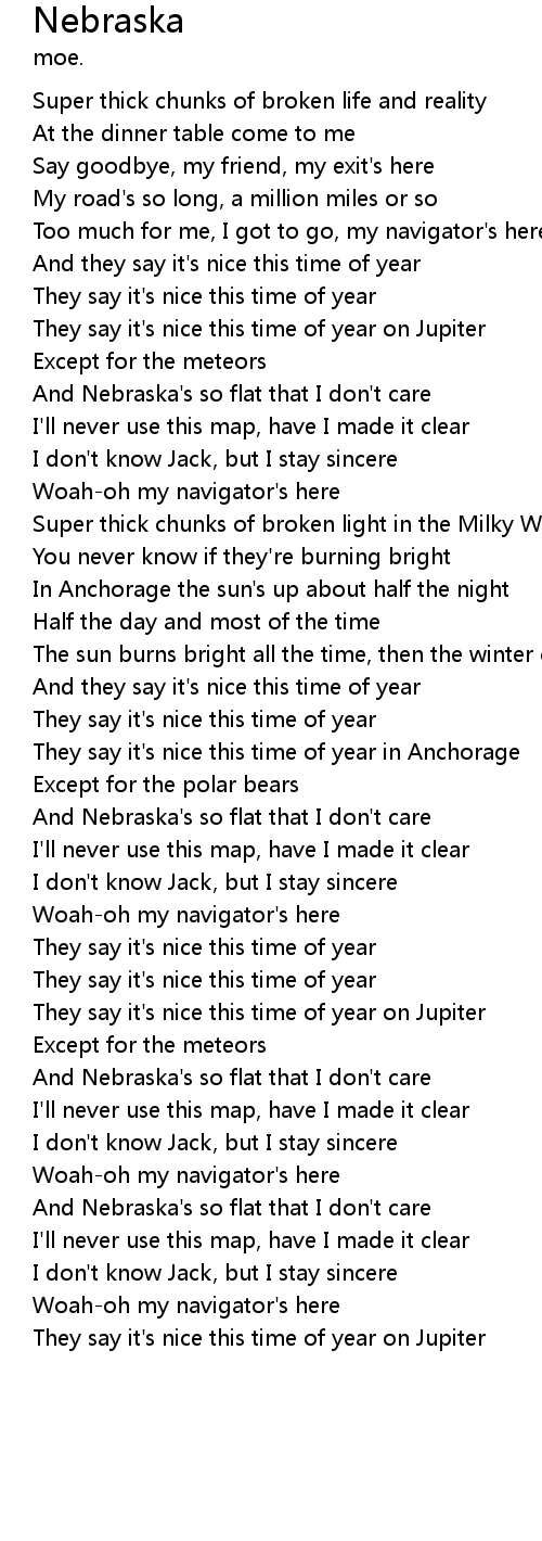 And Nebraska's so flat that I don't care |