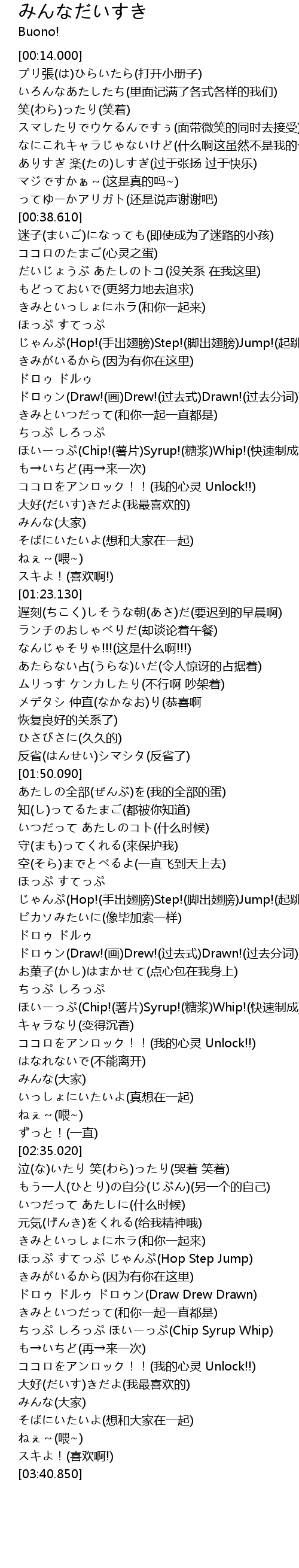| [03:23.540] | 大好(だいす)きだよ(我最喜欢的) |