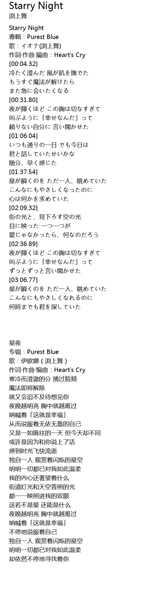 | [00:03.38] | 作詞·作曲·編曲:Heart's Cry |