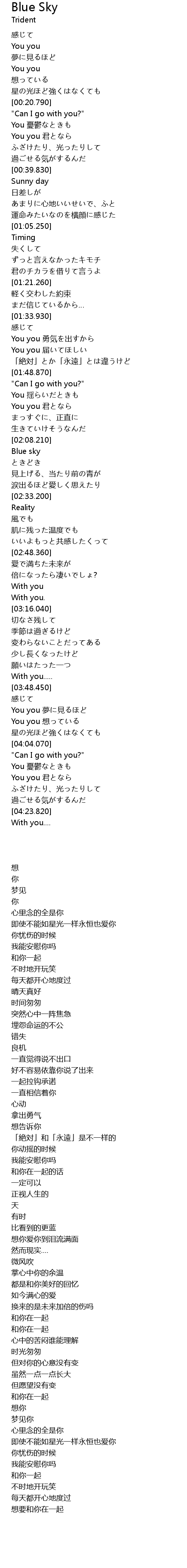 | [02:20.350] | Blue sky |