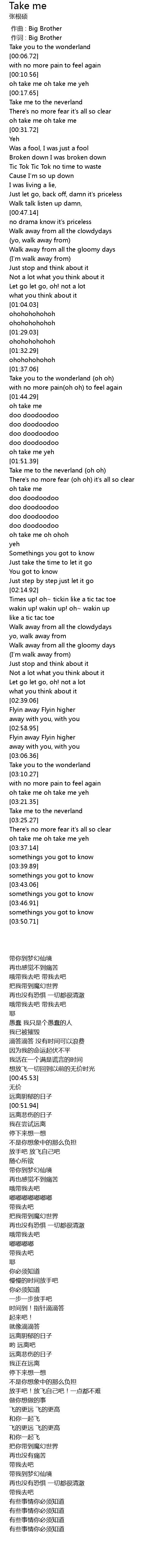 | [00:01.00] | 作词 : Big Brother |