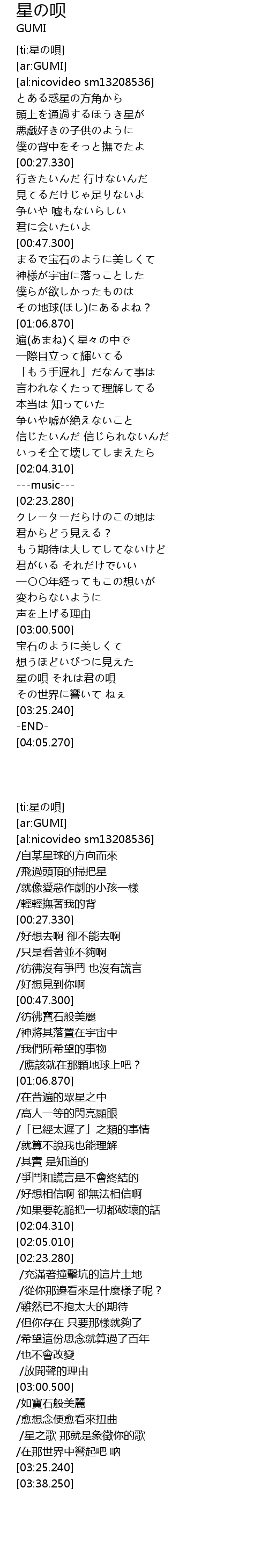 | [03:10.040] | /星之歌 那就是象徵你的歌 |