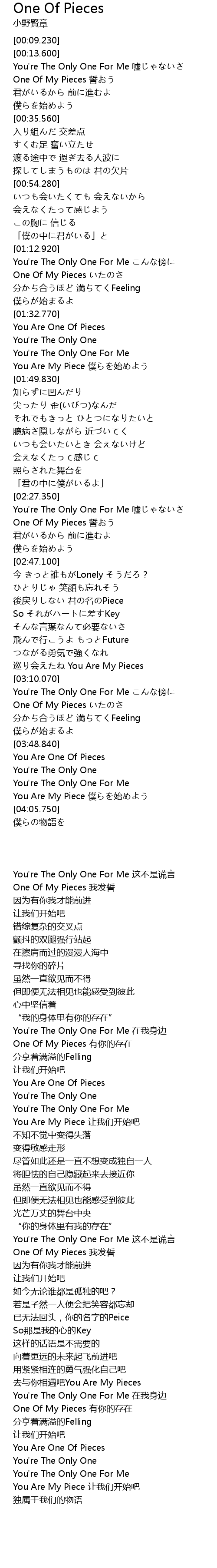 | [03:58.360] | You Are My Piece 僕らを始めよう |