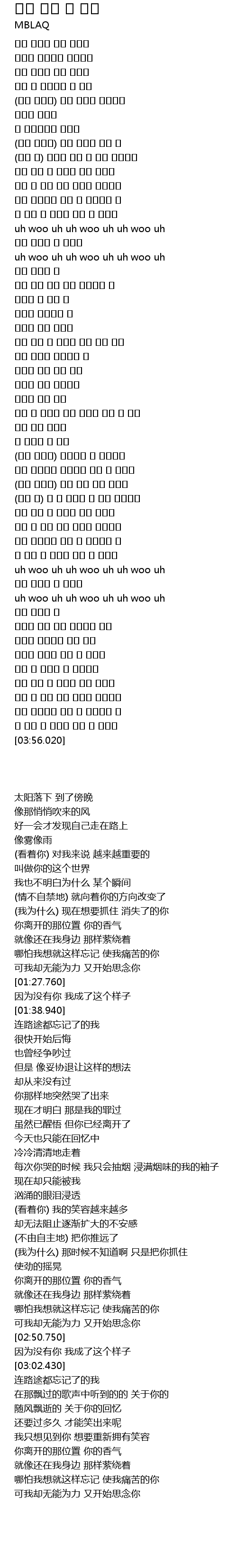 | [03:16.890] | 바람에 떠다니는 너의 기억 |