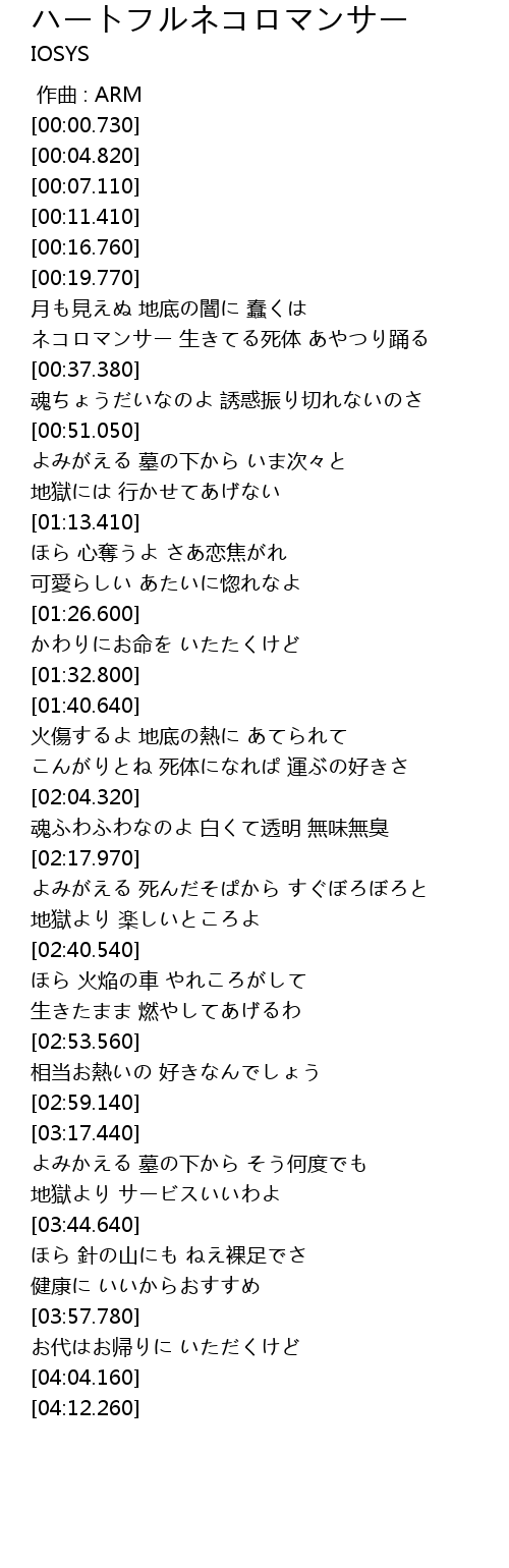 | [00:29.040] | ネコロマンサー 生きてる死体 あやつり踊る |