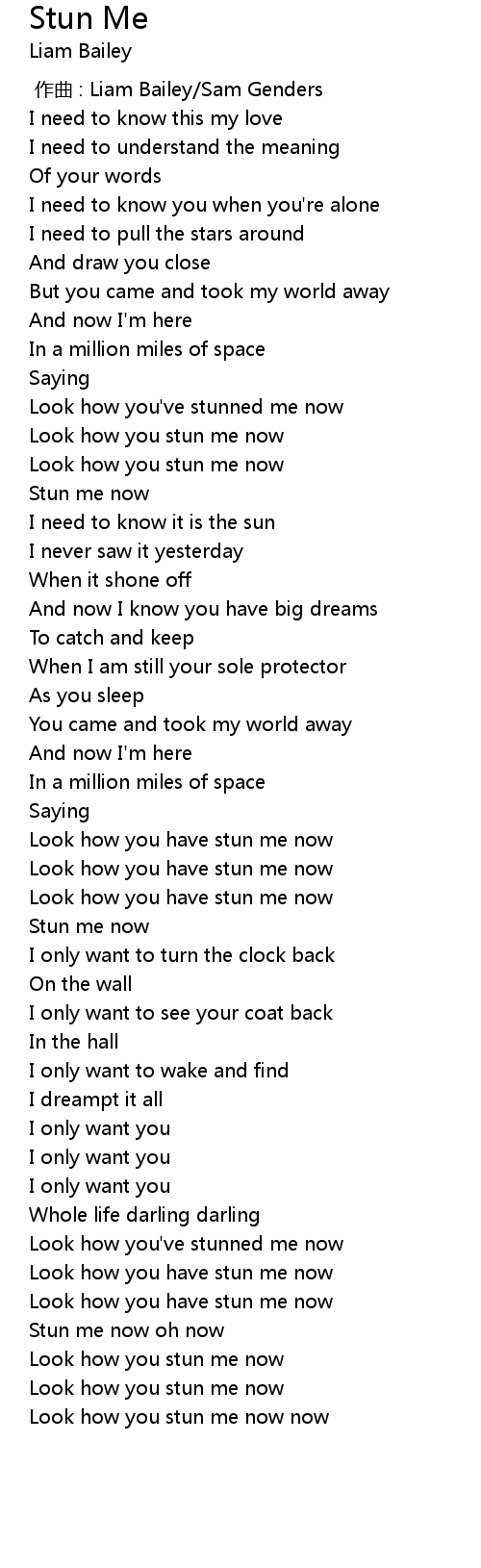 | [03:30.766] | Look how you stun me now now |