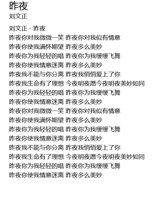 | [01:17.09] | 昨夜你为我轻轻的唱 昨夜你为我缓缓飞舞 |