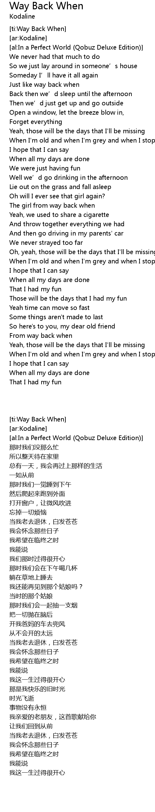 | [02:50.95] | When I'm old and when I'm grey and when I stop working |