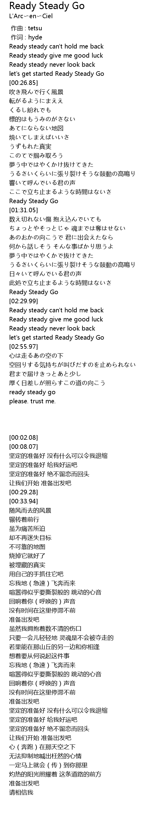 | [02:26.57] | Ready Steady Go |