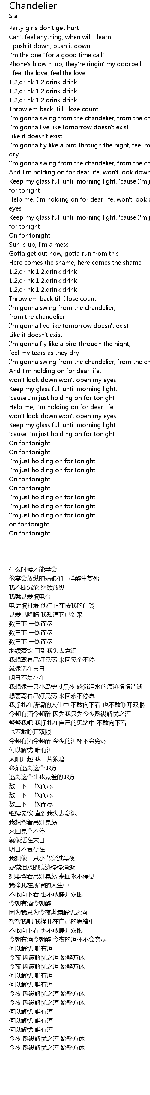 I'm gonna swing from the chandelier, |