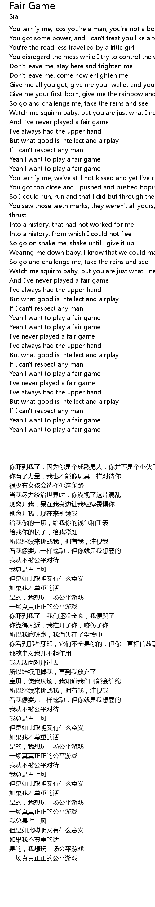 Yeah I want to play a fair game |