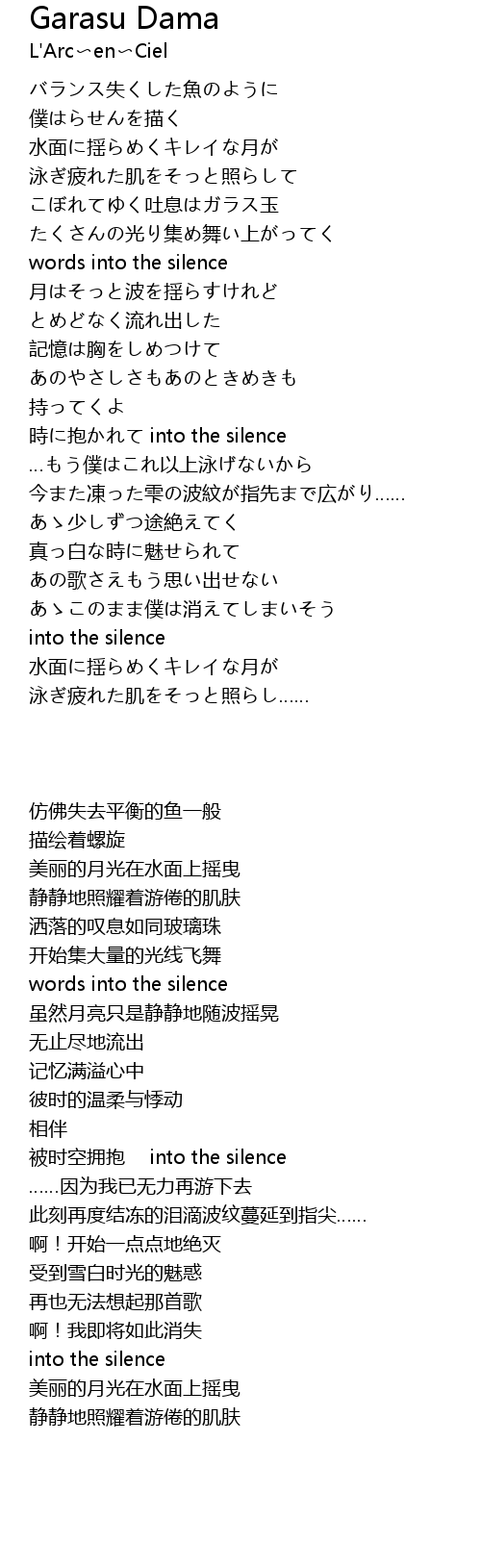 | [02:12.21] | 時に抱かれて into the silence |