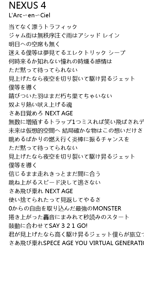 | 未来は仮想的空間へ 結局確かな物はこの想いだけさ | |