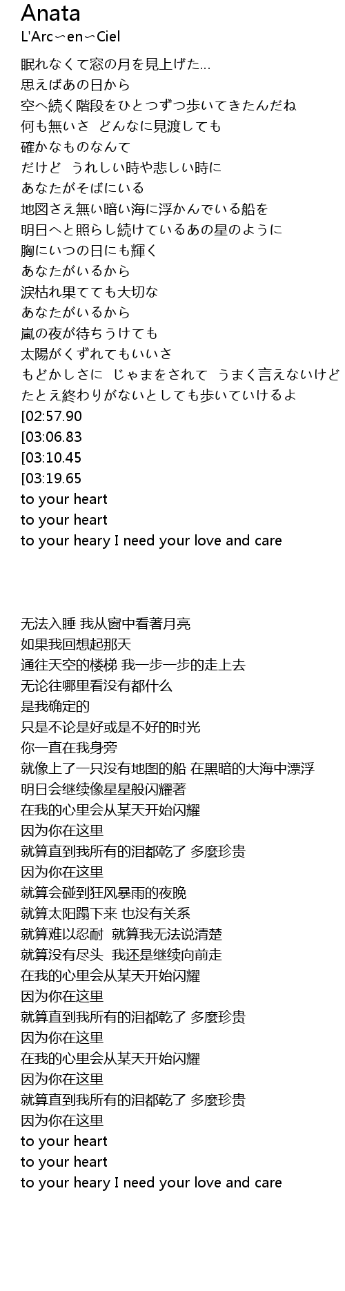 | [03:53.73] | to your heary I need your love and care |