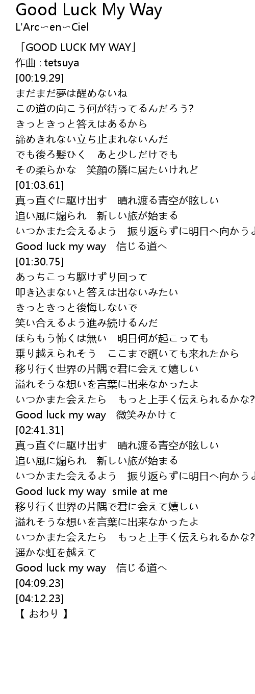| [00:01.29] | 「GOOD LUCK MY WAY」 |