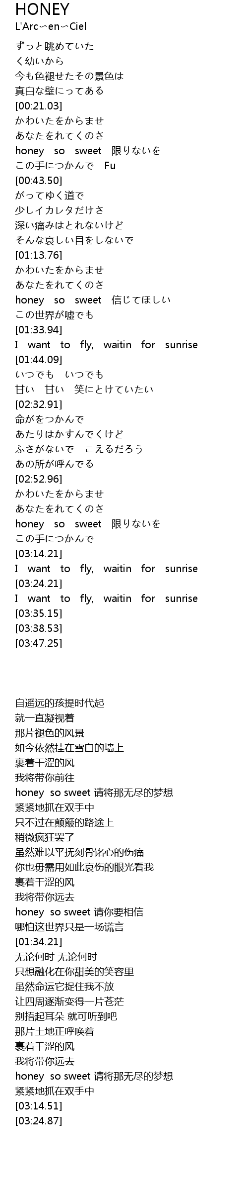 | [03:04.52] | honey so sweet 请将那无尽的梦想 |