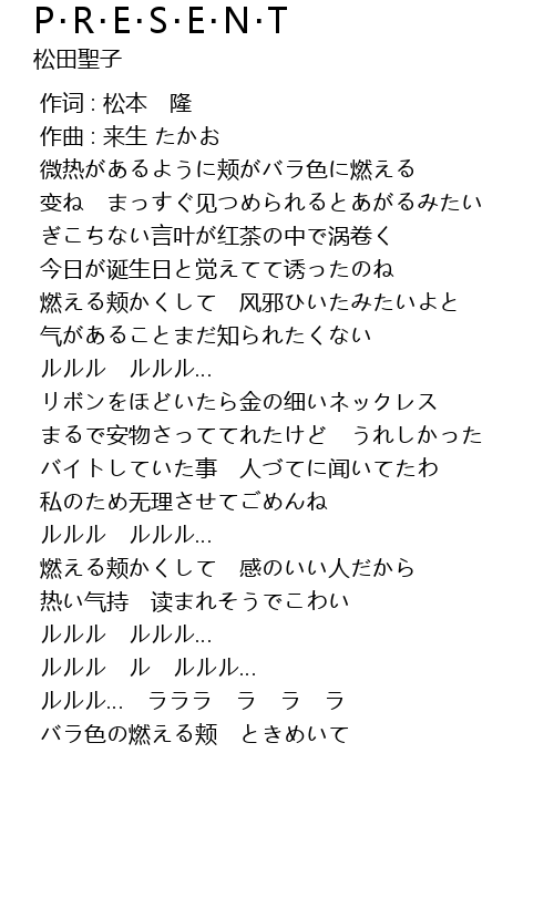| 歌曲 | P・R・E・S・E・N・T |