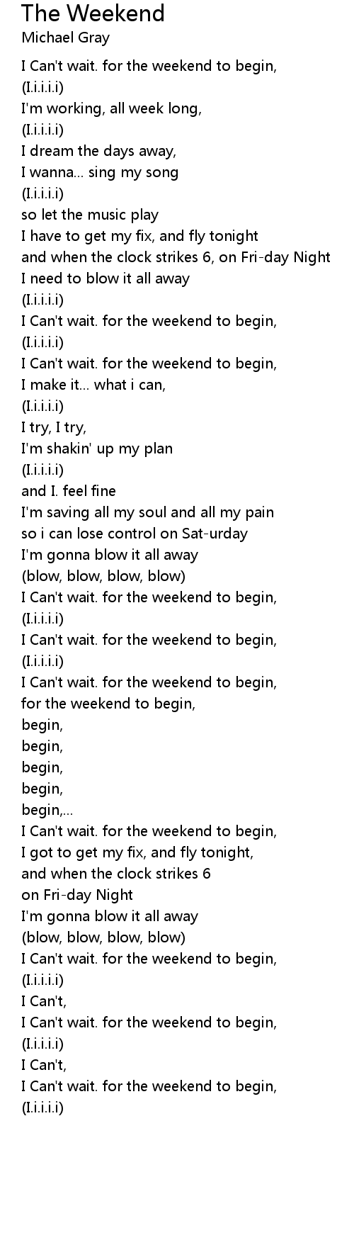 I Can't wait. for the weekend to begin, |