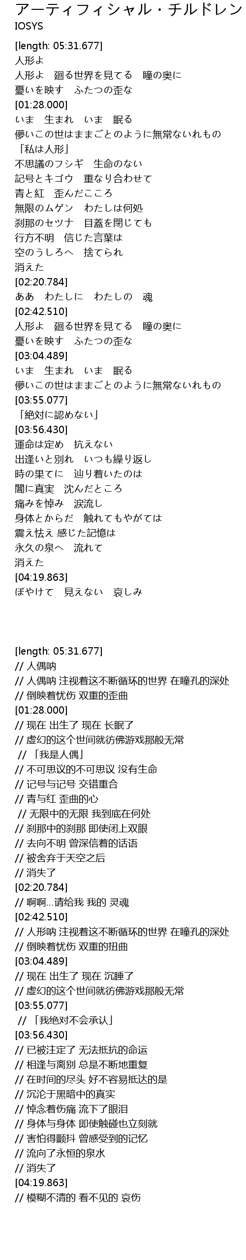 | [02:42.520] | // 人形呐 注视着这不断循环的世界 在瞳孔的深处 |