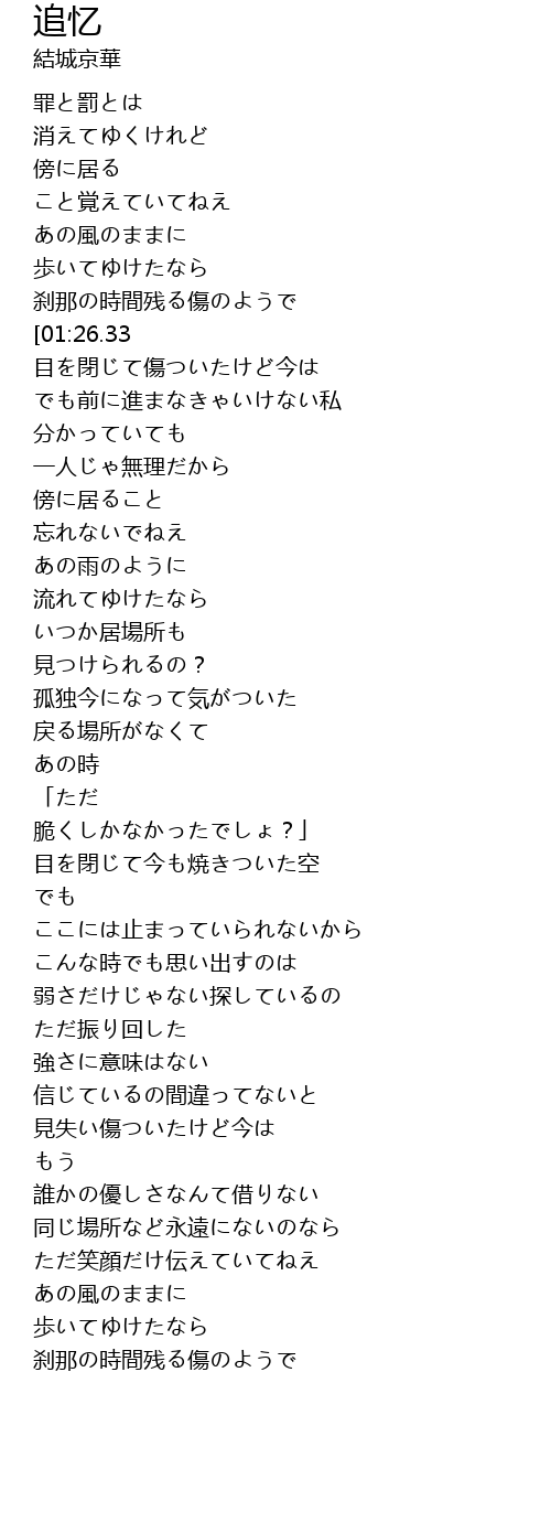 | [03:52.89] | 刹那の時間残る傷のようで |