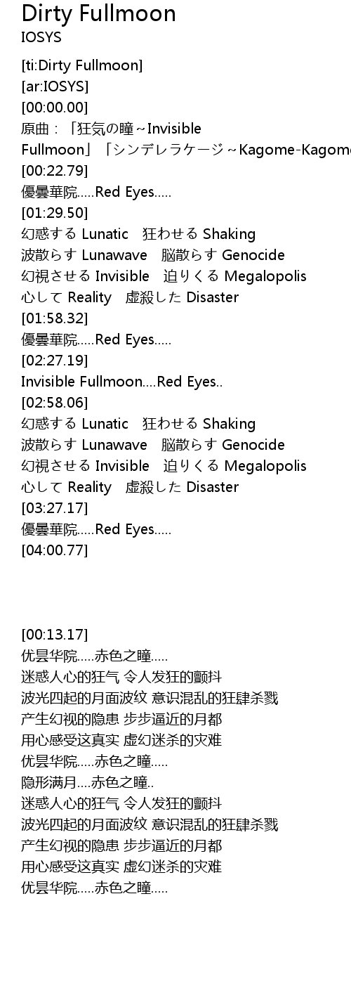 | [02:30.43] | Invisible Fullmoon....Red Eyes.. |