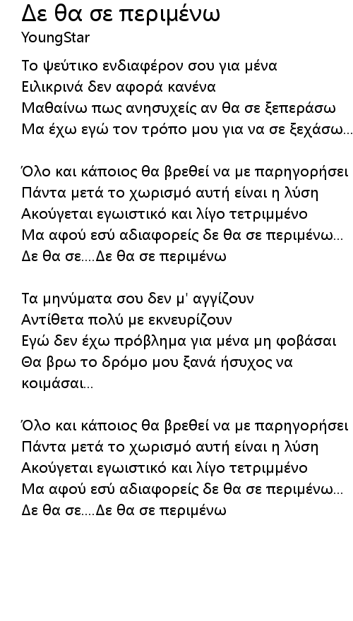 Μα αφού εσύ αδιαφορείς δε θα σε περιμένω...
