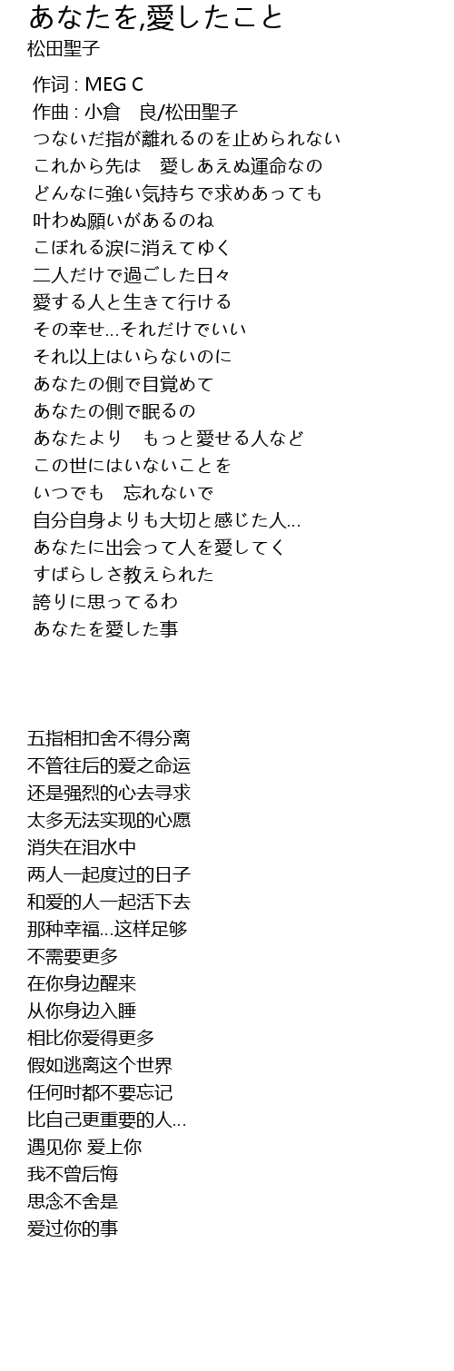 | 歌曲 | あなたを,愛したこと |