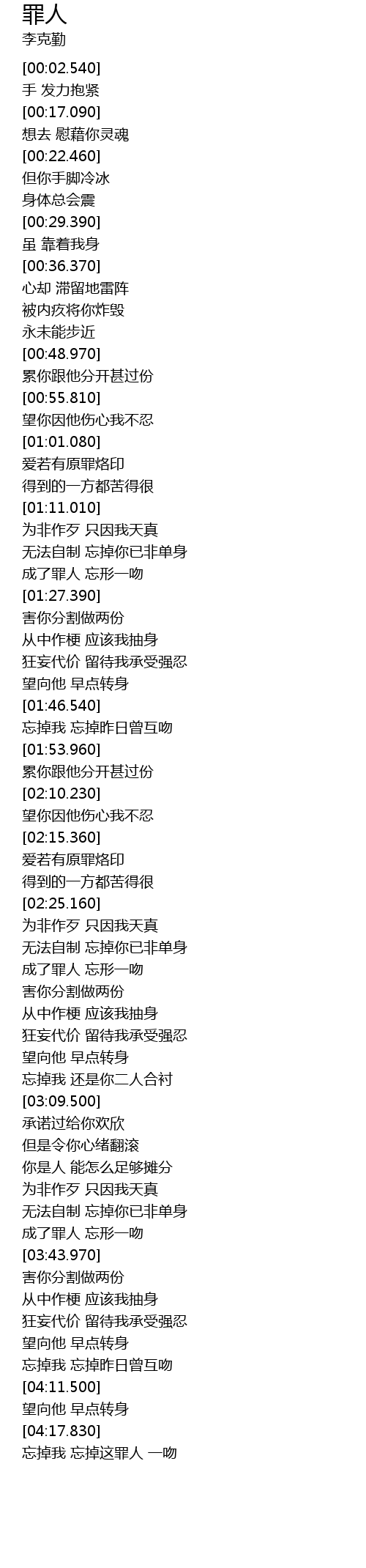 | [04:18.340] | 忘掉我 忘掉这罪人 一吻 |