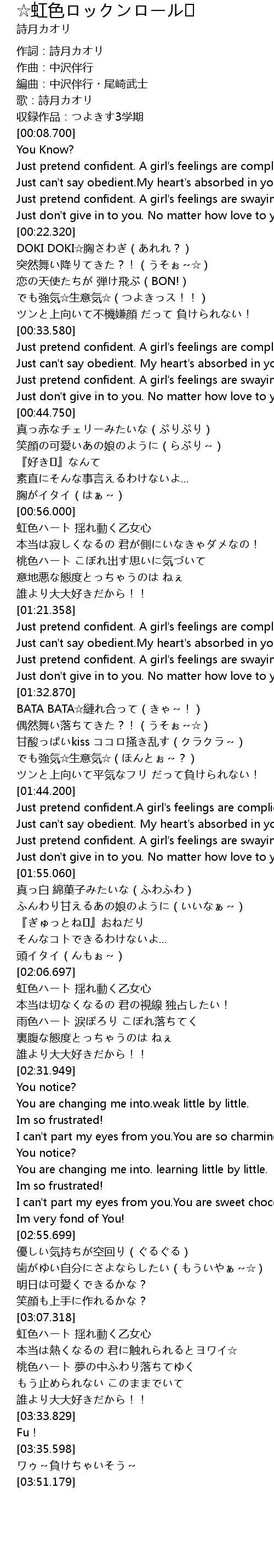 | [02:07.168] | 虹色ハート 揺れ動く乙女心 |