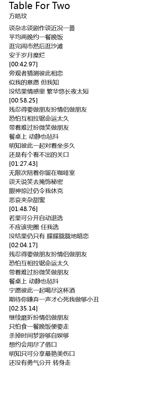 | [02:52.10] | 继续磨折扮情侣做朋友 |