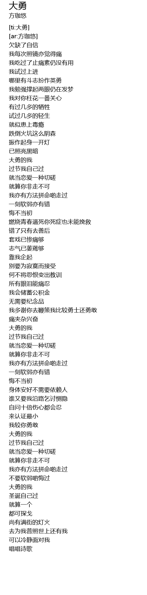 | [01:28.228] | 我多谢你去鞭策我比较勇士还勇敢 |