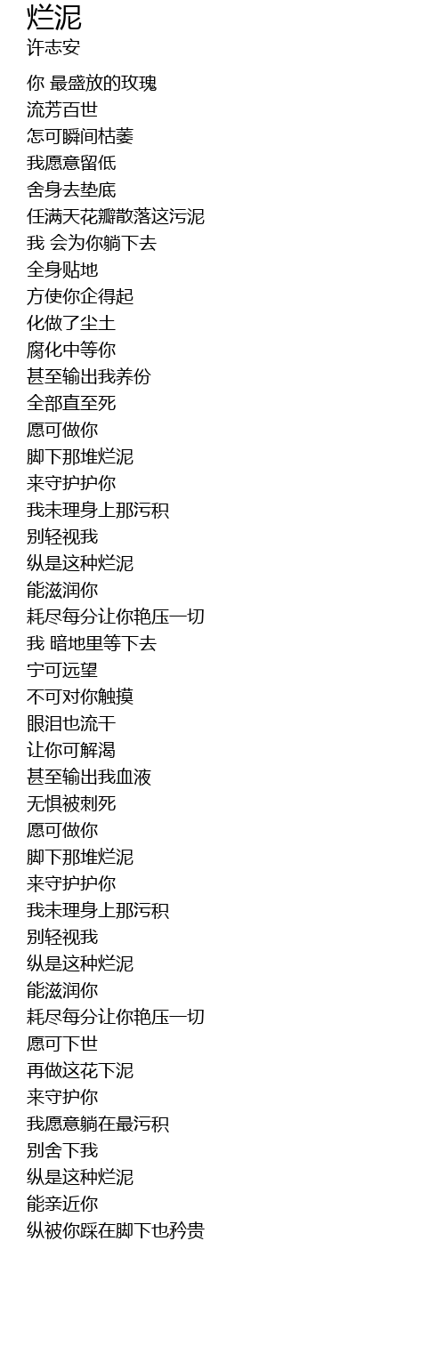 | 歌曲 | 烂泥 |