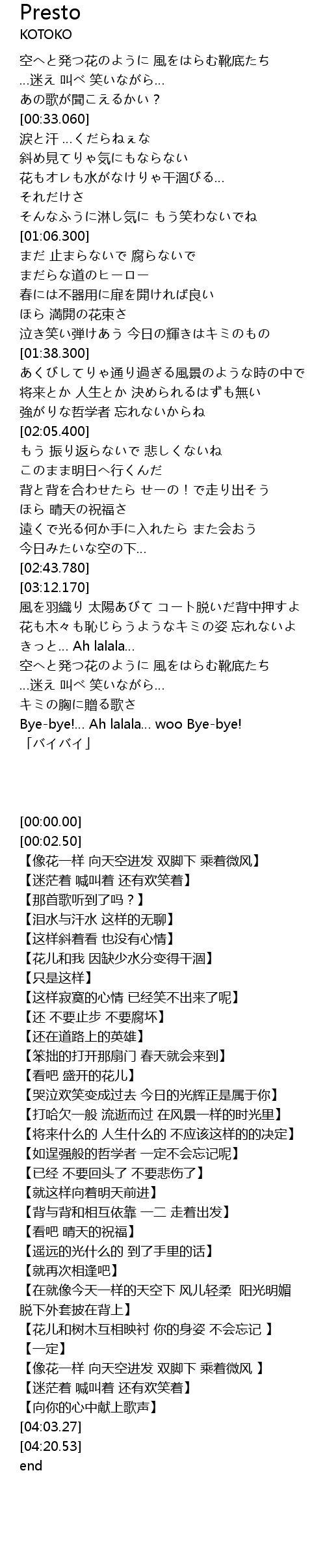 | [04:03.270] | Byebye! Ah lalala woo Byebye! |