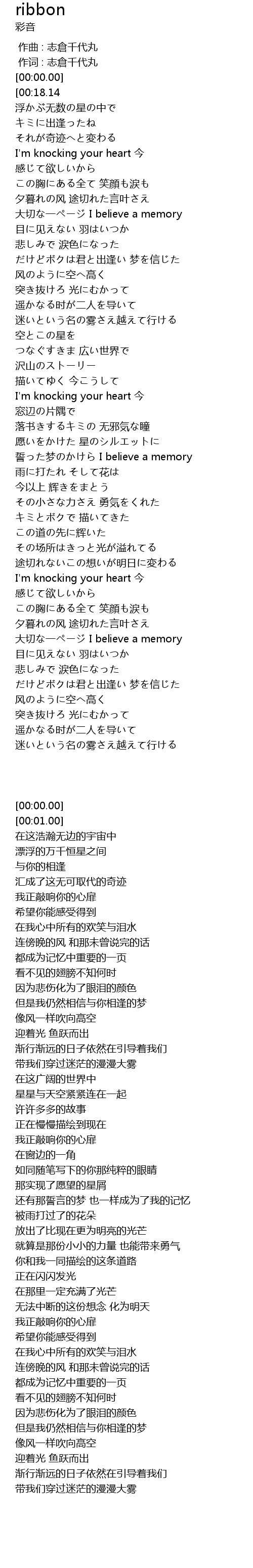 | [00:01.00][00:18.14] | 大きな宇宙に |