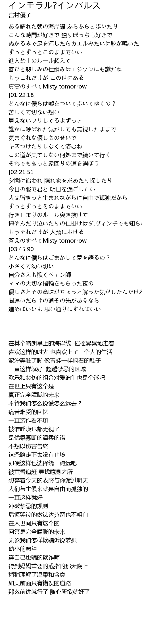 | [03:39.83] | 答えのすべてMisty tomorrow |