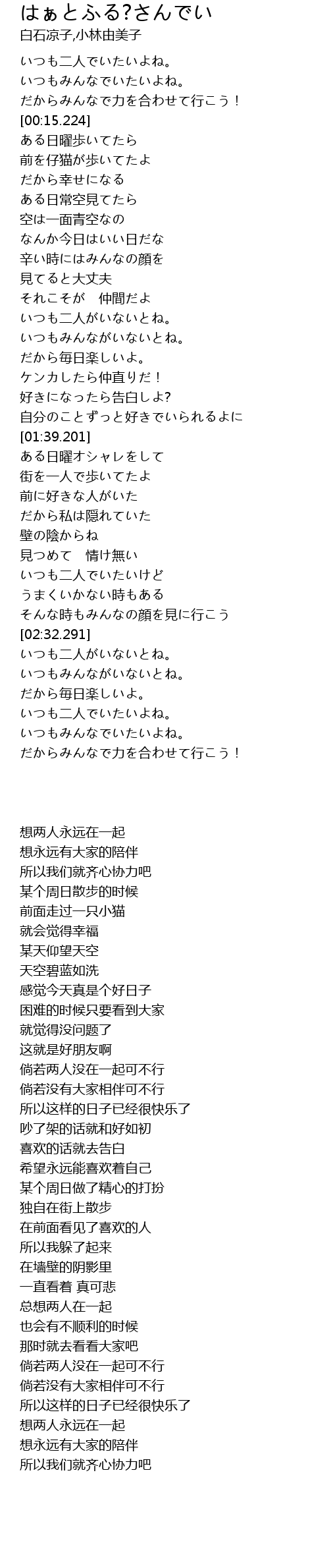| [03:18.223] | いつもみんなでいたいよね。 |