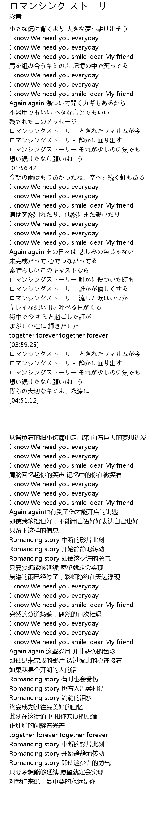 | [00:41.37] | I know We need you smile. dear My friend |