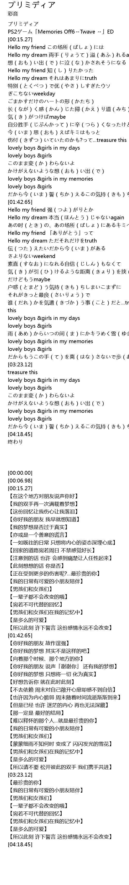 | [00:06.98] | PS2 Memories Off6 Twave ED |