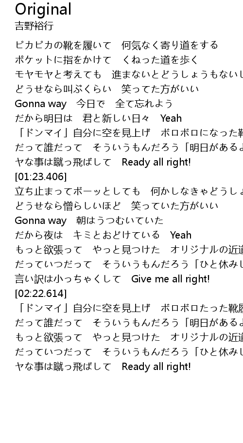 | [02:01.343] | もっと欲張って やっと見つけた オリジナルの近道だから |